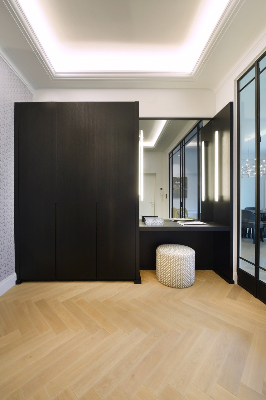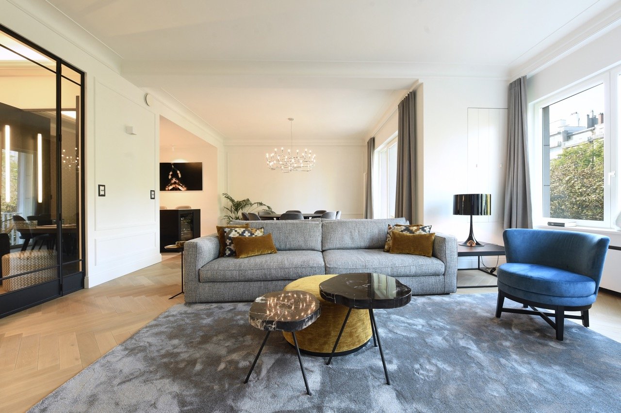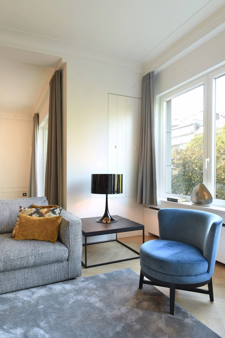 In een van de meest gegeerde wijken van Brussel bevindt zich dit karaktervolle appartementsgebouw uit de jaren ’40. Het appartement op de derde verdieping, met een oppervlakte van 185 m², verkeerde bij aanvang in een verouderde staat. De ambitie was helder: het herstellen van de oorspronkelijke grandeur, vertaald naar een hedendaagse woonbeleving.